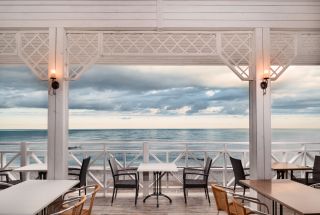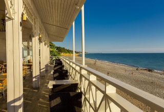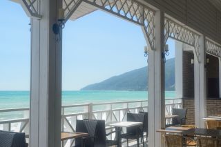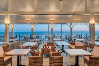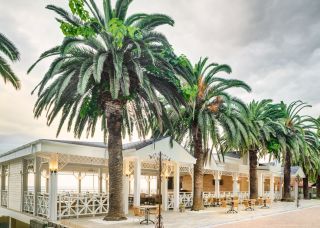 Всего в 50 метрах от отеля находится городской пляж. Песчано-галечный пляж оснащен всем необходимым — есть раздевалки навесы, работает прокат шезлонгов.